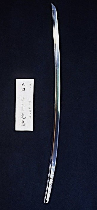 I have shown the four photos above several times on other pages. Those were Mitsutada swords owned by my father. My father did the calligraphy and took these pictures himself. He was very proud that he had collected four Mitsutada swords and had monogrammed “Mitsutada” inside his suit jacket. It is said that Oda Nobunaga (織田信長), with his wealth and political power, collected twenty-eight Mitsutada swords.